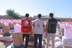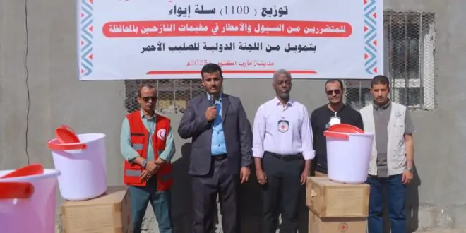 دشّنت جمعية الهلال الأحمر اليمني – فرع مأرب، أمس الأحد، عملية توزيع (1100) سلة إيواء للأسر المتضررة من السيول والأمطار في مخيمات النازحين بمحافظة مأرب. تم ذلك بتمويل من اللجنة الدولية للصليب الأحمر، وبالتنسيق مع الوحدة التنفيذية لإدارة مخيمات النازحين.