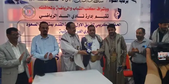 وشهد حفل التكريم حضور أمين عام جائزة رئيس الجمهورية الأستاذ عبد الرحمن عقيل، وأمين عام نادي السد بالمحافظة الأستاذ ياسر الحاشدي، إلى جانب عدد من رؤساء الأندية والشخصيات الرياضية