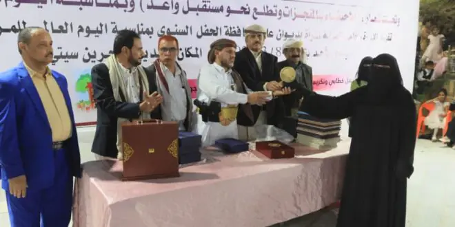 واختتم الحفل بتكريم عدد من القيادات النسوية والنساء الرائدات في المجتمع، في خطوة تهدف إلى دعم وتشجيع المرأة وتحفيزها على المزيد من العطاء والمبادرات. كما تم افتتاح بازار للمنتجات النسوية والأسر المنتجة. ويتيح للنساء عرض مشاريعهن وإبراز إبداعاتهن ويعزز استقلال المرأة اقتصادياً. بالإضافة إلى ذلك، يحفز مشاركتهن المجتمعية في المحافظة، في وقت تظل نساء مناطق الحوثيين محرومات من مثل هذه الفرص الأساسية.