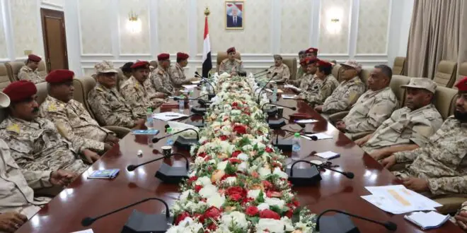 عقد وزير الدفاع الفريق الركن الدكتور طاهر العقيلي اليوم في العاصمة المؤقتة عدن. اجتماعاً موسعاً ضم هيئتي العمليات الحربية والعمليات المشتركة. لبحث المستجدات الميدانية ومستوى الجاهزية القتالية في مختلف التشكيلات العسكرية.