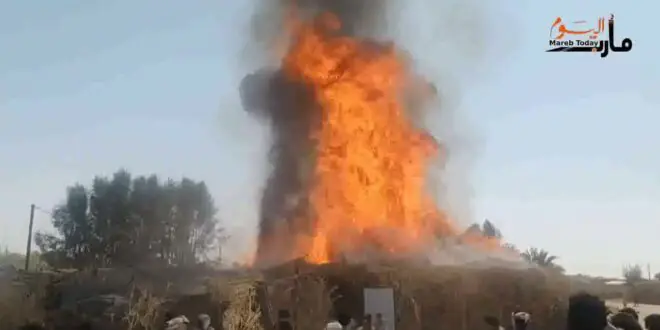 اندلع حريق صباح اليوم الثلاثاء 21 أبريل 2026 في مخيم الأعذل بمديرية الوادي شرق محافظة مأرب. ما أسفر عن تدمير كامل لمأوى أحد النازحين وخسائر مادية كبيرة دون تسجيل أي إصابات بشرية.